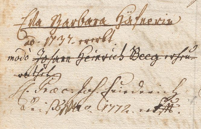 Davor hilft in vielen Fällen die Reihenfolge der Eintragungen, mitunter aber auch ein Vergleich der Tintenfarbe, der Handschrift oder überhaupt deren zeitliche Einordnung.